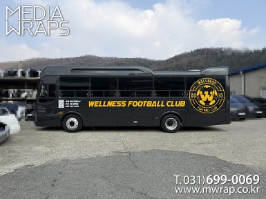 버스 청라웰리스축구클럽 [작업차량] 현대에어로타운[차량색상] 블랙[랩핑타입] 부분랩핑 ..